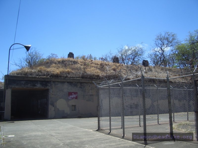 One of the end set of stairs. That's the crater rim showing at the top of the photo. The battery would have fired over that to the ocean. The unfilled gun mount is on the right, in the wall on the left is a lantern alcove and anchor ring.