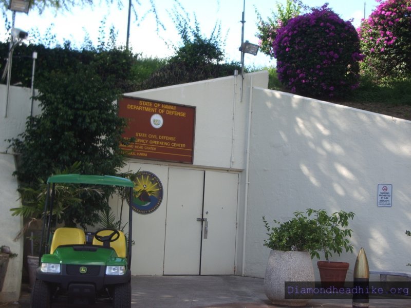 The entrance to the Civil Defense Headquarter's tunnel. This tunnel is still in use by Civil Defense, although the entrance has been beefed up a bit. And it's not acutally a tunnel, although it feels like it inside. This area is the old Birkhimer Battery, which had been converted to office and storage. The Birkhimer Battery was apparently set in a pit and the central section roofed over for protection. Later the guns were moved from alongside the cetral section and out into what is now the parking lot, and the bun pits were also roofed over and became more office space.