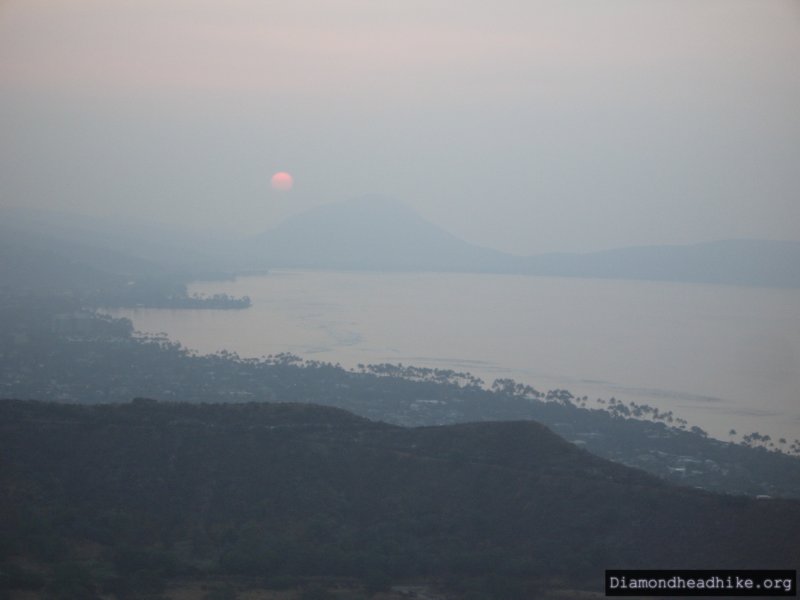 April 25, 2008 6:08 AM. Finally the sun becomes barely visible through the Vog.