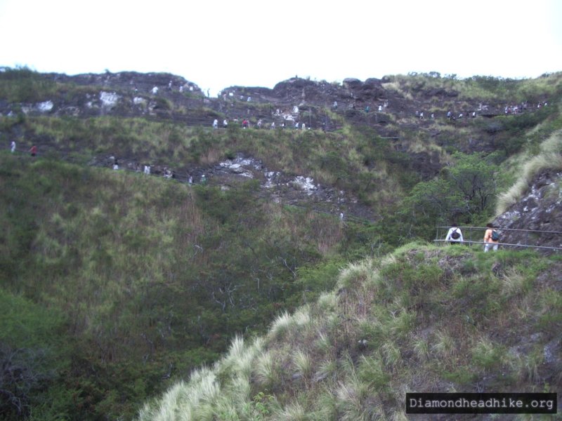 This is from a little further up. The switchbacks are around the curve to the left, the trail straight ahead is the first section after the concrete path ended, and the parking lot is to the right beyond the hill. This photo was obviously taken during the winter or spring.