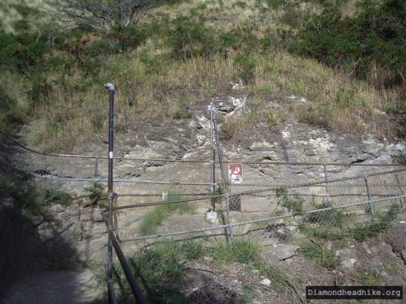 The first big curve. From here it gets steeper and hotter. The building apparently was related to the old utilities that ran to the top. When the Fire Control Station was originally built there was no electricity and probably no water, so all the utilities were added as "upgrades". There's another bench here to sit on.
