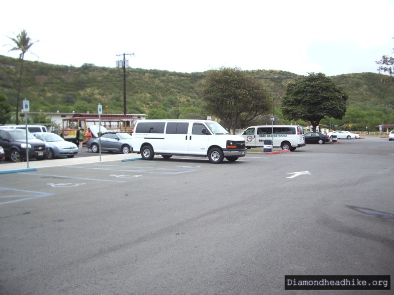 Looking down into the crater from about the same spot. There's two roads on the right and one on the left that lead to restricted areas, straight ahead is your only option. The ticket booth is just ahead. You're headed for the highest spot straight ahead. On foot.