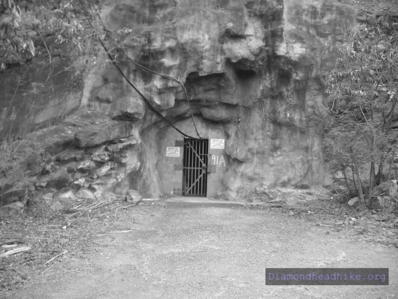 Looking through the gate, the tunnel is smaller than the storage tunnels, and curves to the left.